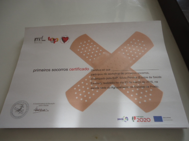 Realizou-se no passado na EB de Prado no dia 21 de março um workshop sobre 1ºos socorros organizado pelo GAAF / PES e dinamizado pela enfª Sílvia Pereira, da equipa da Saúde Escolar.